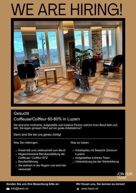 Wir stellen ein: Coiffeuse/Coiffeur (60 – 80%)